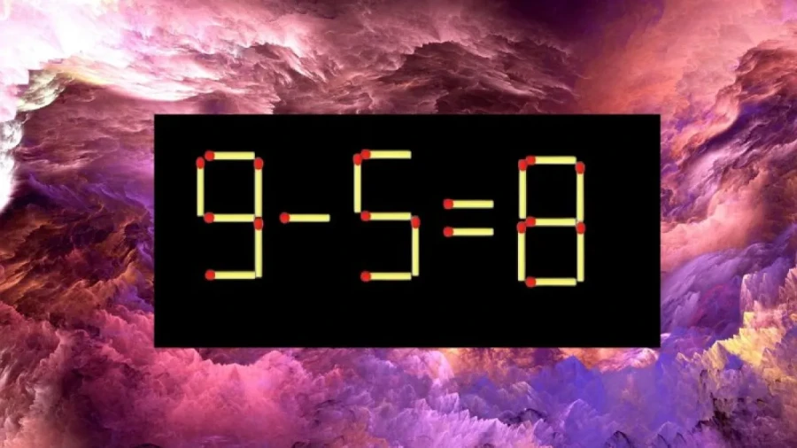 Посмотри на картинку. Там написано «9-5=8». Это неправильно! Тебе нужно передвинуть всего одну спичку, чтобы всё стало верно. Попробуй найти, как!