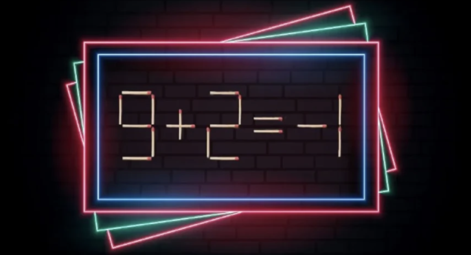 Взгляните на картинку: на ней выражение «9+2=-1». Что-то тут не так, верно? Выражение неправильное из-за того, что одна спичка лежит не на своём месте. Найдите её и переставьте.