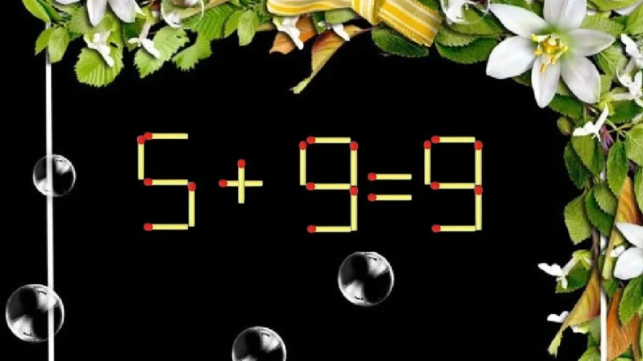 На картинке написано «5+9=9», это неправильно. Нужно переставить всего одну спичку так, чтобы получилось верное равенство. Задачка не из легких, нужно подумать!