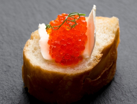 Теперь нарезаем хлеб, намазываем его сливочным маслом и выкладываем на бутерброд красную икру. А в результате получаем отличный пикник на природе.