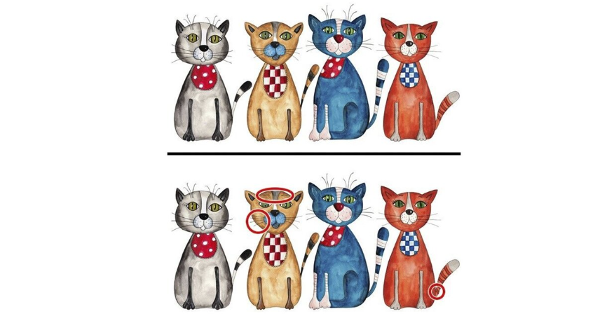 Более того, есть задачки, которые становятся экспресс-тестами состояния мозга. Например, как сегодняшние милые котики. Между ними всего 3 отличия, но найти их мгновенно можно только, если мозг работает как швейцарские часы.