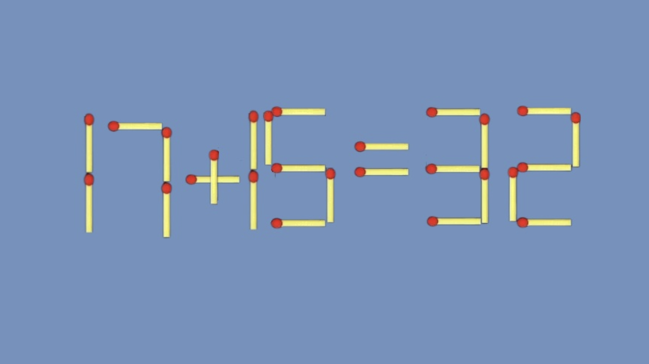 На картинке пример «11+15=92». И первокласснику понятно, что он неправильный. Случилось так из-за одной спички, которая лежит не на своём месте. Найдите её и переложите на нужную позицию.