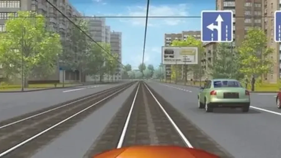 Рассмотрите картинку и ответьте: можно ли вам на легковом ТС продолжить движение по трамвайным путям попутного направления?