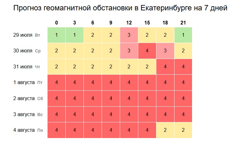 Конец июля в Екатеринбурге ознаменуется приходом сильной магнитной бури, которая с различной интенсивностью продлится до середины дня 4 августа.