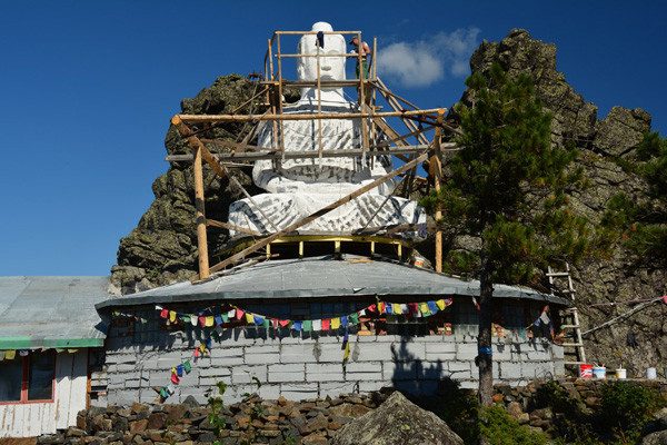 В монастыре нас встретила наша старая знакомая Хонгорма, девушка, которая, как правило, отвечает за прием гостей. Мы были напоены чаем и отправились на небольшую экскурсию под руководством Григория по территории монастыря. Пока Григорий рассказывал про монастырский комплекс, кругом кипела работа. Кто-то занимается покраской статуи Будды, кто-то работал по хозяйственной части, а кто-то дробил скалу. При деле абсолютно все, даже сам Лама Докшит в руках с отбойным молотком.