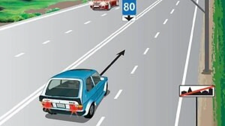 Рассмотрим очередной вопрос из экзаменационного билета на получение водительских прав. Специалисты отмечают, что многие ошибаются на этом вопросе. Итак, давайте рассмотрим его. Легковой автомобиль движется по левой полосе. Перед водителем установлен знак, который рекомендует двигаться не более 80 километров в час. При этом правая сторона свободна. Для наглядности ниже приводим картинку.