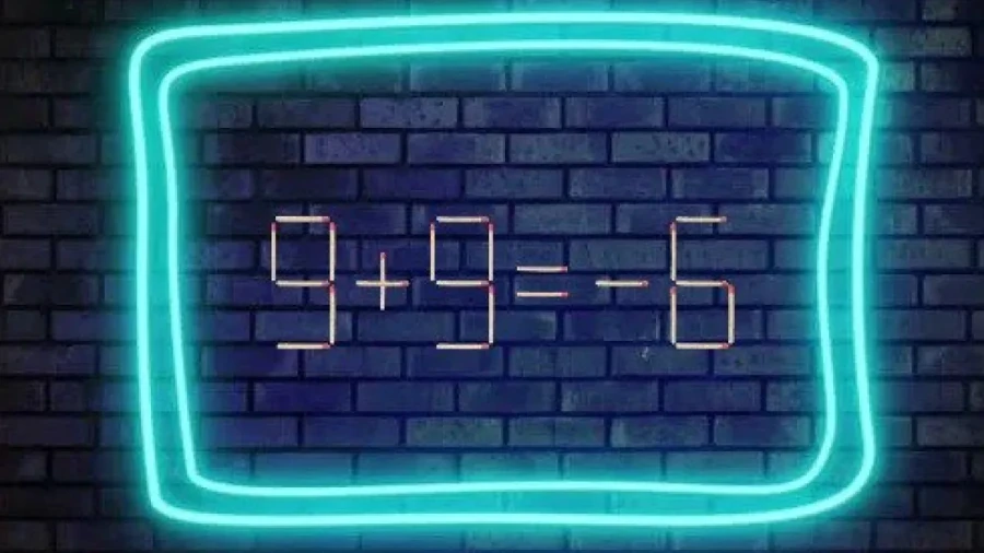 На картинке пример «9 + 9 = -6». Он неправильный. Нужно переставить только одну спичку так, чтобы исправить ошибку. Найдите спичку, которая все портит, и сделайте правильно.