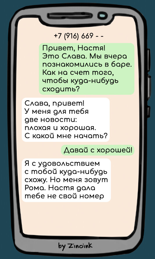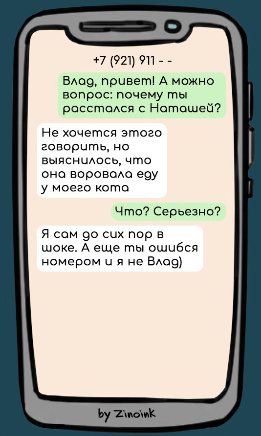 Бывает, ошибаешься номером телефона и попадаешь не туда. Вместо злости, иногда получается смешно! Это как будто жизнь подкидывает забавные истории, рассказывает автор канала «Zinoink».