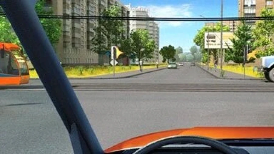 Разберем ситуацию, когда светофор сломан. На рисунке изображен легковой автомобиль. Его водитель намеревается проехать перекресток прямо. Однако на пересекаемой дороге есть и другие участники движения — трамвай и грузовик. Чтобы не ошибиться в ответе, вам следует обратить внимание на дорожные знаки.