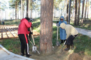 В приозерном парке Среднеуральска освободили сосны от губительного грунта