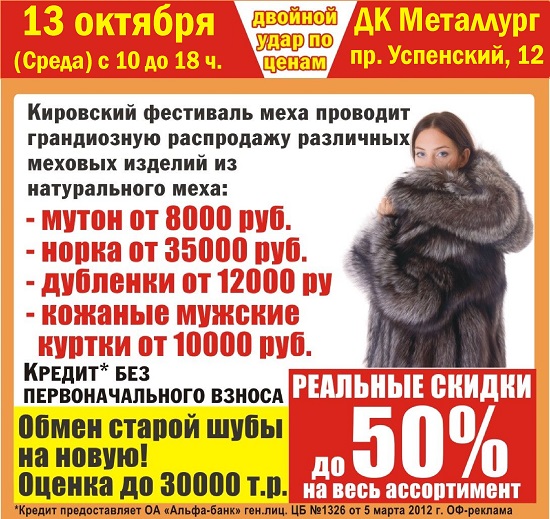 13 октября в ДК Металлург с 10 до 18 проводится Фестиваль меха!