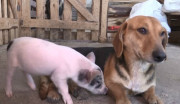 В Среднеуральске собака Чекушка стала приемной мамой поросенку Ван Дамму