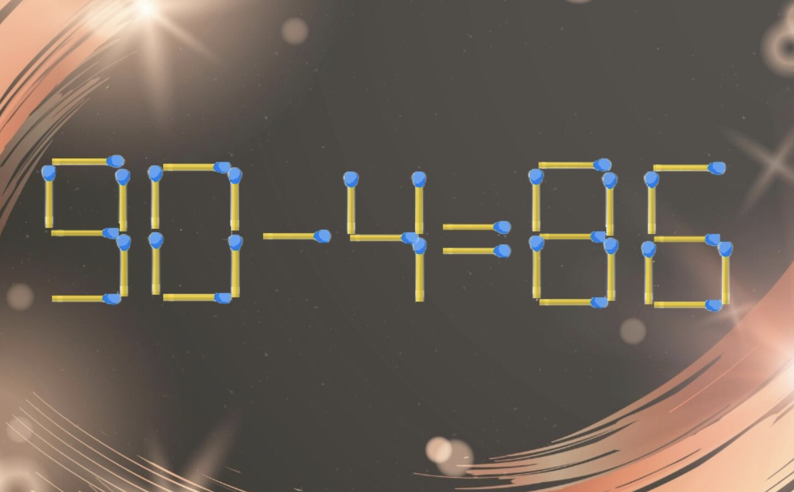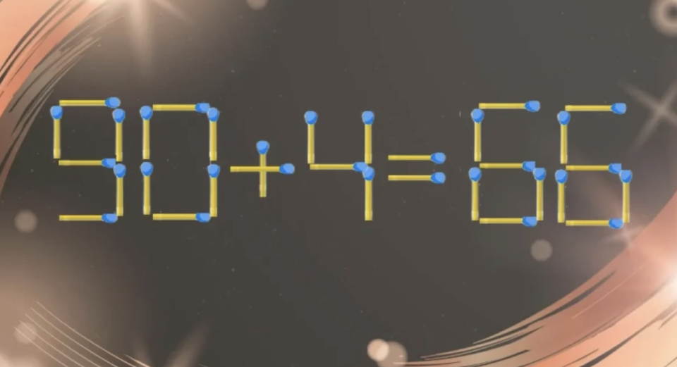 На иллюстрации пример «90+4=66». Даже детсадовец заметит, что он неверный. Соответственно, ваша задача — его исправить. Чтобы это сделать, надо переставить ровно одну спичку. Добавлять и убавлять спички нельзя.
