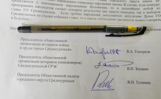 От имени жителей городского округа Среднеуральск просим Вас как главу Свердловской области разобраться и принять меры в связи с нарушениями закона, допущенными депутатами Думы ГО Среднеуральск и членами конкурсной комиссии при проведении конкурса по отбору кандидатур на должность главы ГО Среднеуральск, объявленного 15 января 2019 года.