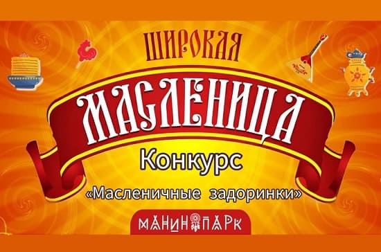 Всех гостей парка ждёт море веселья, а мы начинаем настраиваться на самые яркие и запоминающиеся моменты праздника! В Манином парке ежегодно проводится традиционный народный праздник «Широкая Масленица». Одним из главных украшений праздника станет выставка-конкурс «Масленичные задоринки», который включает в себя:
