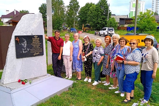 Участники клуба «Умные километры» Балтымской сельской библиотеки прошли по улице и остановились у красивого памятника в честь летчика-штурмовика Михаила Ивановича Талыкова.