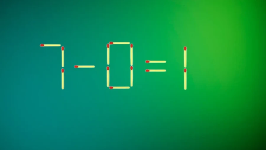 На картинке написано «7-0=1», это неверно. Нужно переставить всего одну спичку так, чтобы равенство стало правильным.