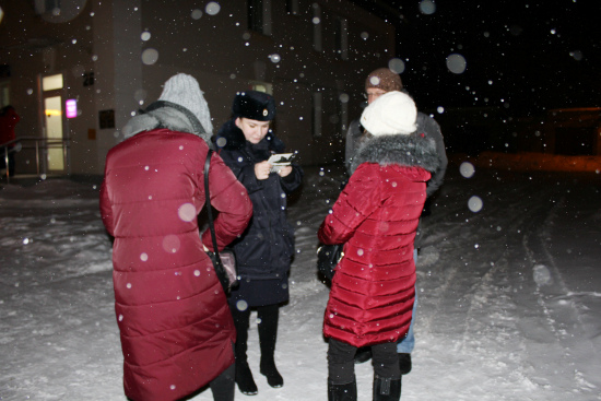 28 декабря 2019 года совместно с сотрудниками полиции на очередной рейд вышли инспектор верхнепышминского МФ ФКУ УИИ ГУФСИН России по СО Писецкая Софья Владимировна, ответственный секретарь ТКДН и ЗП Цыганкова Светлана Владимировна, зам. начальника управления социальной политики по городам Верхняя Пышма и Среднеуральск Кропачев Николай Михайлович, начальник отдела социальной политики администрации ГО Верхняя Пышма Осокина Наталья Александровна, ведущий специалист отдела МП МКУ "УСМ ГО Верхняя Пышма" Толстоусова Татьяна Андреевна.