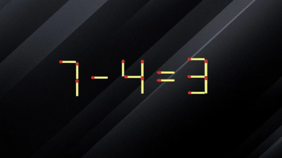 Посмотрите на картинку, там написано «7-4=5», но это неправильно. Нужно передвинуть всего одну спичку так, чтобы получилось верное равенство.
