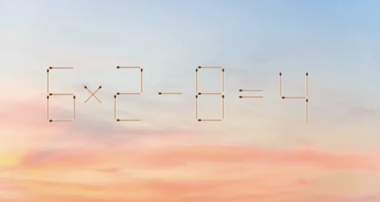 На картинке из спичек сложили пример «6×2=8-4». Все мы умеем считать и понимаем, что пример неверный с математической стороны. Это случилось из-за того, что одна спичка лежит не на своём месте.