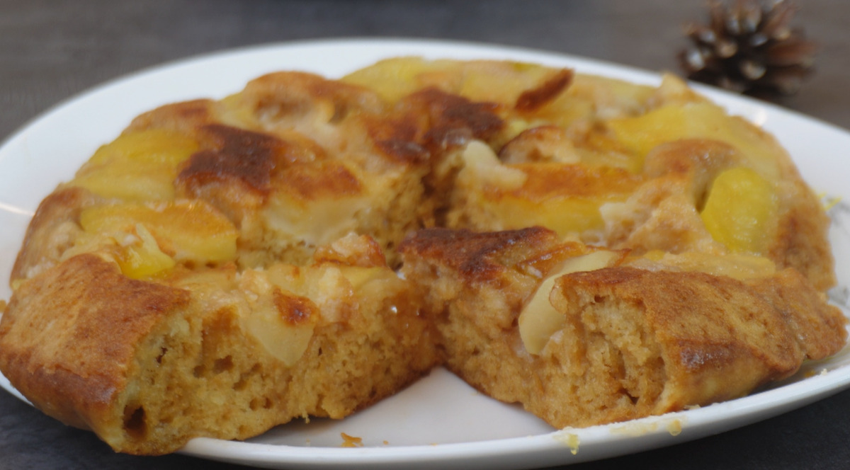 Через 25 минут верх пирога стал упругим. Я перевернула его с помощью тарелки, дала доготовиться с другой стороны пару минут. Забыла сказать, что от себя добавила ещё в начинку немного корицы.