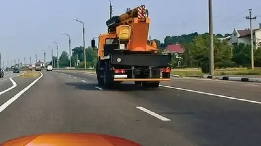 Внимательно изучите картинку и ответьте: по какой полосе можно продолжить движение после опережения грузового автомобиля.