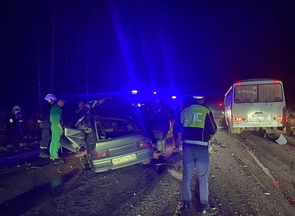 Авария случилась в воскресенье, около 23:00, на 8-м километре автодороги Первоуральск — Шаля. Водитель ВАЗ-2112 1991 года рождения выехал на встречку и влетел в автобус ПАЗ, за рулем которого находился водитель 1974 года рождения. В результате происшествия водитель и пассажир легковушки скончались до прибытия скорой помощи.