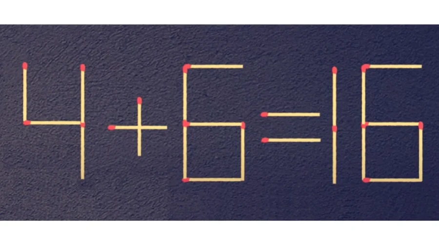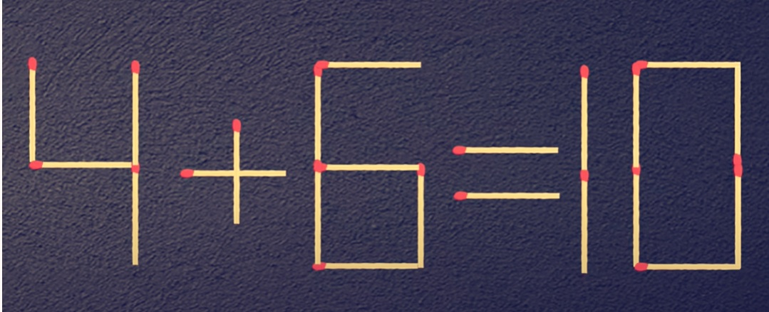 У нас есть равенство «4+6=16». Ошибка прямо бросается в глаза. Исправить ее можно, передвинув лишь одну спичку Приступайте прямо сейчас.