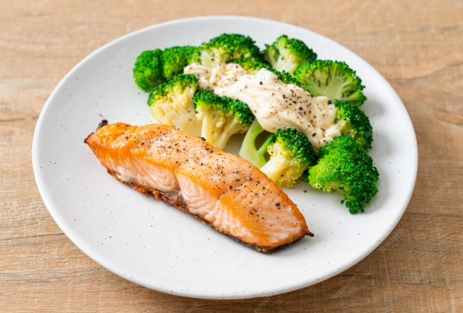 — нежирная рыба или курица (отварная, запечённая): хек, минтай, судак, грудка индейки или курицы;