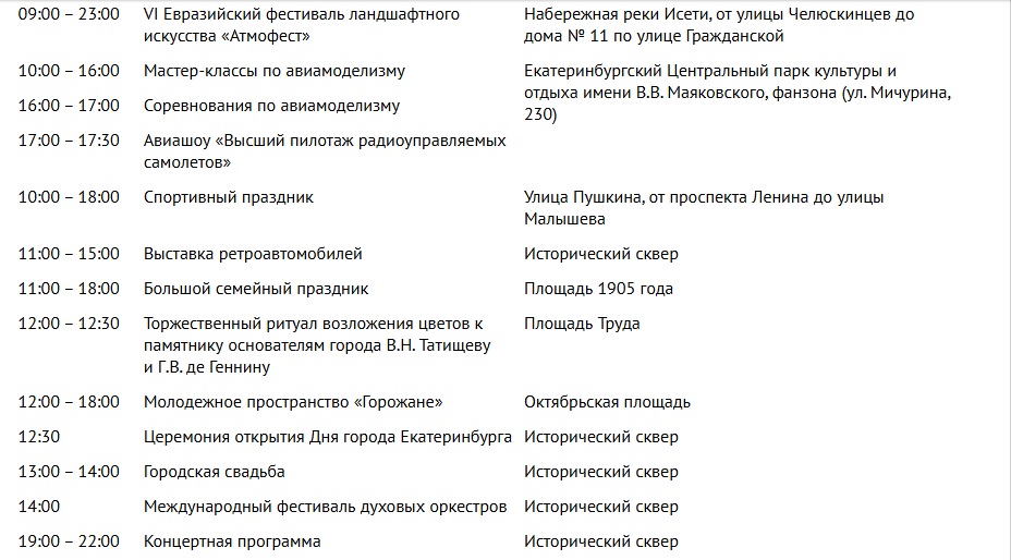 Основные праздничные мероприятия в Екатеринбурге пройдут 17 августа. Вот основные из них: