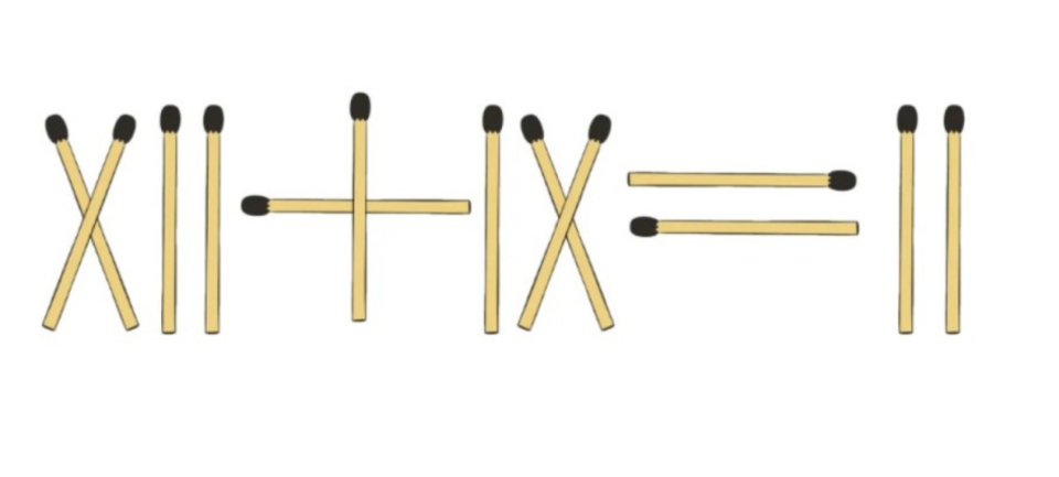 На картинке выложен пример из римских цифр, но, если посчитать, он неправильный. Вспомните, как считать такие цифры и сделайте пример верным — для этого вам придётся переложить одну спичку.