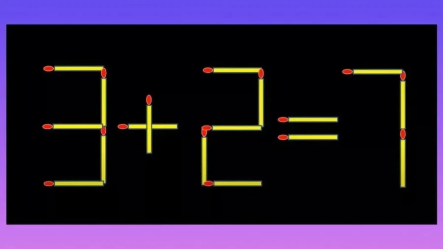 У нас есть следующая запись: 3+2=7. В примере явная ошибка. Чтобы ее исправить достаточно переместить всего одну спичку. Ищите правильное решение.