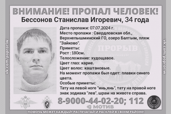 34-летний Станислав Бессонов, пропавший на озере Балтым под Верхней Пышмой, найден мертвым. Об этом сообщили волонтеры регионального отделения поискового отряда «Прорыв».