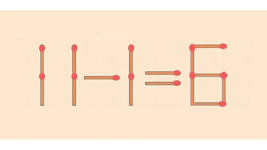 Давайте приступать. На этот раз мы приготовили для вас следующую задачку. У нас еть равенство «11-1=6». Ошибка в ней очевидна, но чтобы исправить, надо будет подумать. Необходимо передвинуть одну спичку, чтобы равенство стало верным.