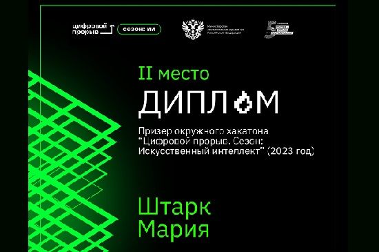 Разработчик с Урала завоевала «серебро» на престижном конкурсе для специалистов в области IT. В окружном хакатоне «Цифровой прорыв. Сезон: Искусственный интеллект», где за призовые места боролись 132 команды, Junior ML-разработчик ГК «УГМК-Телеком» Мария Штарк участвовала впервые. В составе команды также были её коллеги по магистратуре Пётр Иванов и Александр Кожевников из Уральского центра систем безопасности (УЦСБ), а также Андрей Чернов из технологической компании Konergy.
