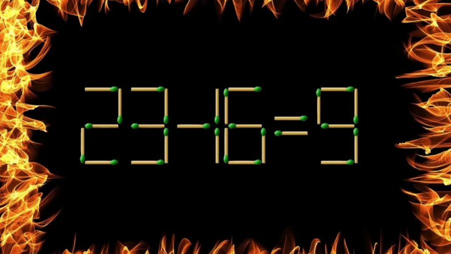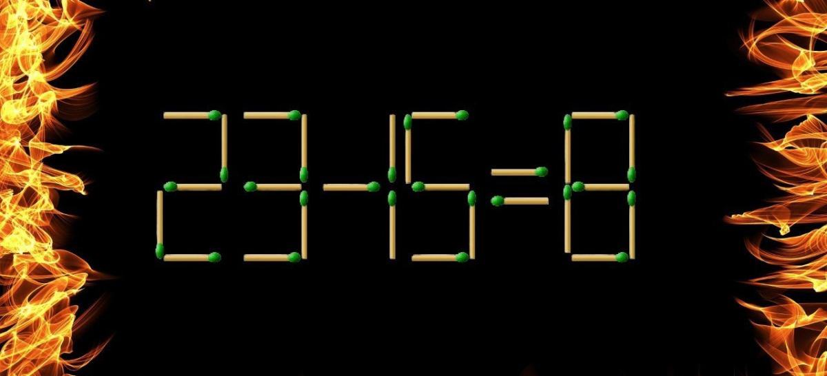 У нас есть пример: «23-16=9». В ней допущена ошибка, исправить которую можно, переставив одну спичку.