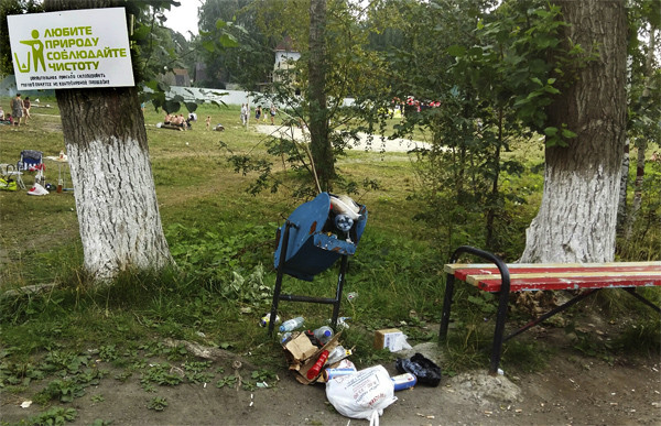Одно смущает – везде лежит мусор. По берегу установлены четыре бачка, но они уже давно заполнены до краев, часть мусора лежит на земле. Над этой кучей вьются осы и мухи. До краев наполнены и простые мусорки по аллее. Хотя возле ДК стоят специальные контейнеры. И они почти пусты. Почему-то большинство горожан любят сорить там, где и отдыхают. Хотя можно пройти лишние 50 метров и улучшить свою карму – подать хороший пример детям, не своим, так чужим, которые бегают рядом. Берег усеян «бычками», пакетиками от чипсов, сухариков. Можно было сослаться на ветер, мол, унес проказник. Но был штиль….