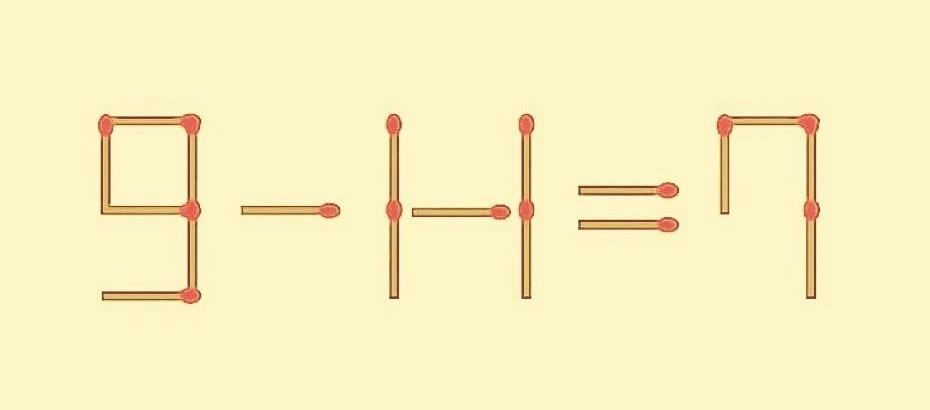 Нам необходимо из цифры 8 изъять одну спичку, чтобы получилась цифра 9. лишнюю спичку ставим знаком минус между единичками цифры 11. Итоговая запись теперь следующая: «9-1-1=7».