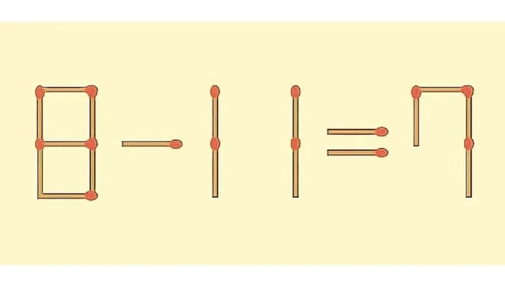 Нам предложили следующее равенство: «8-11=7». Дикая ошибка, которую надо исправить, передвинув лишь одну спичку. Приступаем к решению.