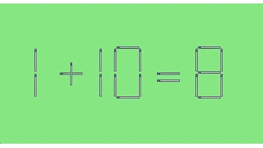 У нас есть следующая запись: «1+10=8». И первоклассник скажет, что здесь ошибка. Исправлять будем перетаскиванием одной спички. Приступайте к поиску правильного варианта.