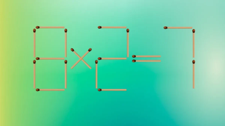У нас есть следующая запись: «8×2=7». Пример решен с ошибкой. Чтобы ее устранить нам надо переместить две спички. Начинаем искать правильное решение.