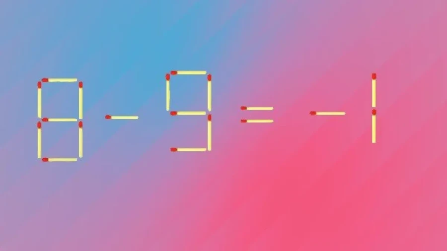 Забери одну спичку из второй восьмерки и поставь ее перед единицей, чтобы получился минус. Получится верное равенство «8 — 9 = -1».