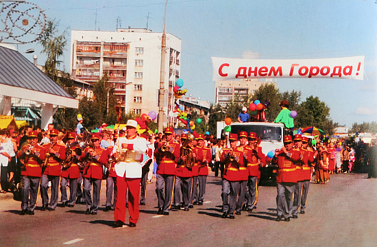 С утра в тот день в городе звучала музыка. Общий городской праздник в основном был проведен своими силами. На стадионе Металлург в 11 часов начались спортивные соревнования. Желающие горожане могли понаблюдать за успехами местных любителей волейбола, городков и шахмат.
