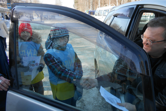 «Мы хотим поздравить вас с этим замечательным праздником, пожелать вам здоровья, счастья, мужественности и, конечно же, безопасных дорог вам и вашим близким», - обращались ребята к водителям и пешеходам с праздничными пожеланиями.