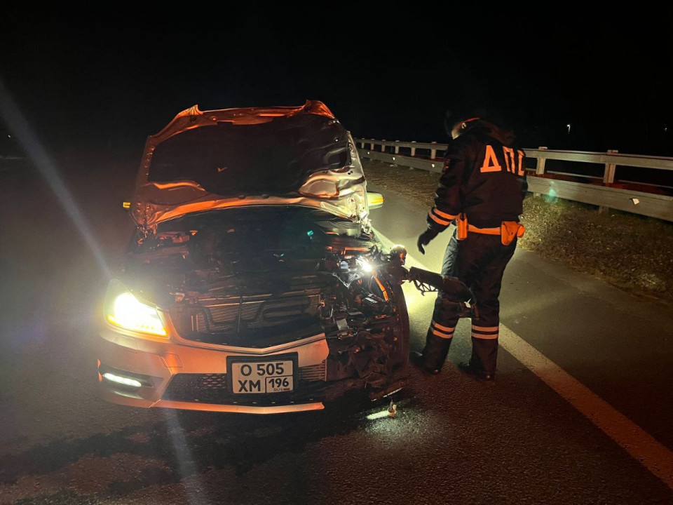 Вторая авария случилась в 22:45 на 26-м км автодороги Екатеринбург — Нижний Тагил — Серов под Верхней Пышмой. Пешеход оказался под колёсами Mercedes, которым управлял 23-летний автолюбитель. 66-летний екатеринбуржец умер сразу.