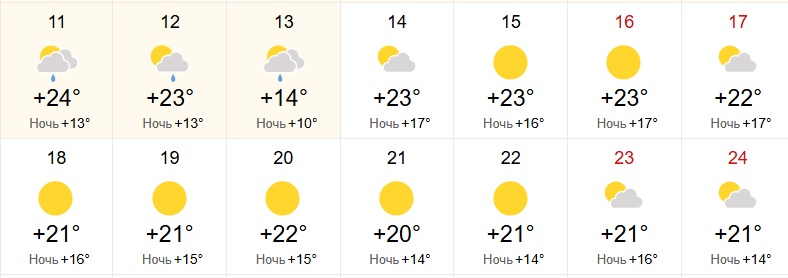 Схожий прогноз предоставили и синоптики сервиса «Яндекс Погода». Они сообщают, что в День города в Екатеринбурге дождей не ожидается, а столбики термометров поднимутся до отметки в +18 градусов. Но уже в воскресенье возможен кратковременный дождь.