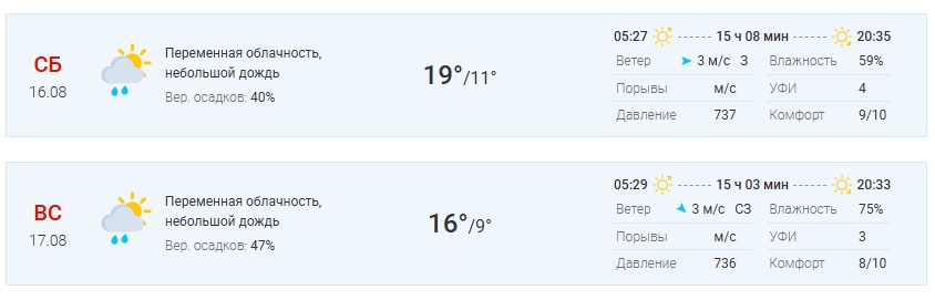 О небольшом дожде предупреждает и метео- сайт Pogoda.ru. Там уверены, что зонтики екатеринбуржцам и гостям города понадобятся как 16, так и 17 августа.