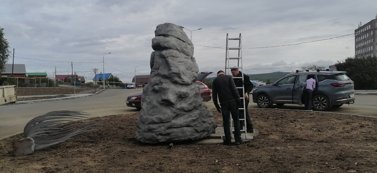 Своеобразный арт-объект появился в Качканаре минувшей осенью. Его высота — шесть метров. Однако местные жители не оценили памятник и тут же стали сравнивать его с кучей испражнений, которую венчает рыбий скелет. Правда, возмущались они деликатно, говорили, что «скульптура серая, мрачная и не очень похожа на скалу».