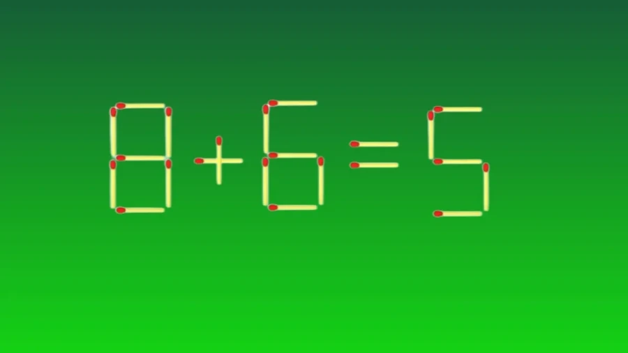 Посмотрите на картинку. На ней написано «8+6=5», это неверно. Переставьте всего одну спичку так, чтобы равенство стало правильным.