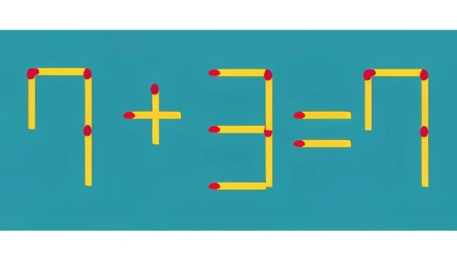 Будем работать исключительно с первой цифрой записи. Берем спичку с цифры 7 и ставим ее так, чтобы получилась цифра 4. Теперь наша запись правильная: «4+3=7».